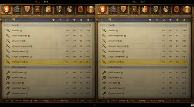 《天国:拯救2》物品再平衡MOD,平衡且可信。每单位重量的价格更合适。轻量级物品成本更低,重量 - 更多;技术复杂的物品价格更高(剑、锁子甲),简单 - 更少(狼牙棒、斧头、弓、一些胸甲)。许多武器和盔甲的重量更改为更真实的值。食物变化。