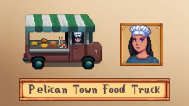 《星露谷物语》鹈鹕镇美食车MOD,Elm 主厨是一位热情的厨师,多年来一直从事烹饪工作。她已经在该地区旅行了一段时间,感觉像是一个变化,所以她决定在鹈鹕镇停留!Elm 将在每周一和周四访问鹈鹕镇,出售随机各式各样的熟食和其他美食。