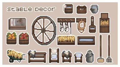 《星露谷物语》稳定别致的装饰MOD,好吧,这里有一些可爱的装饰品供您选择,让您的朋友感到更加舒适和被爱。这个模组为每个装饰品添加了两种不同的木材替代品,除了大轮子和金属桶。您可以在室内或室外使用家具来打造理想的马厩。