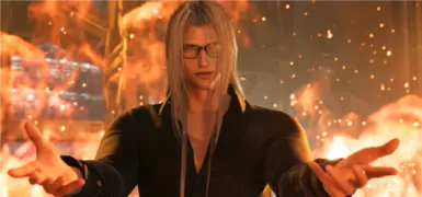 《最终幻想7:重生》更帅的萨菲罗斯MOD,Sephiroth穿着黑色纽扣衬衫,戴着一副眼镜。这就是我想象中扮演 Spehiroth 的演员可能会看着剧本的表格阅读的方式。这适用于他的 standard 和 Transform (wing) 模型)。有一个可选文件可以删除眼镜。