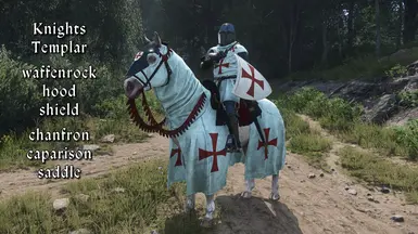 1、添加圣殿骑士团的 waffenrock、兜帽、盾牌、chanfron、caparison 和 saddle。