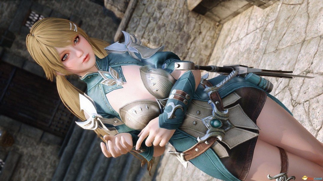 1、让你的女随从穿上精灵牧师套装,适应 CBBE 3BA 身形,衣服附带物理特性。