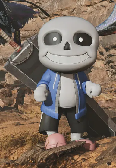 《怪物猎人:荒野》伙伴Sans头套MOD,这个模组将你游戏中用 Sans 替换 Palico Chatacabra 套装!