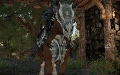 《上古卷轴5:天际重制版》龙骨马甲MOD,添加一匹龙骨装甲骏马。死亡冲锋者。这是一匹龙骨铠甲马,独立而忠诚。