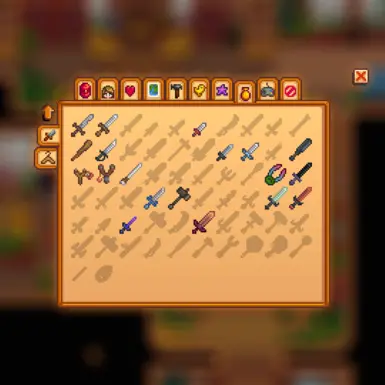 《星露谷物语》军械库和服装MOD,在 collections 选项卡中添加两个新集合;一个用于武器,一个用于服装。