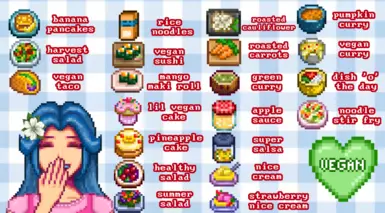 《星露谷物语》山谷中的素食主义者MOD,添加(而不是替换)21 个纯素食谱到您的游戏中,仅使用原版成分!用鹈鹕镇最健康的菜肴给你的农民一些很棒的增益!