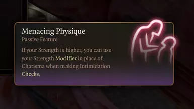 《博德之门3》恐吓的力量MOD,这个 Mod 为所有队员添加了一项名为 Menacing Physique 的新功能,允许他们在进行恐吓检查时使用力量代替他们的魅力。