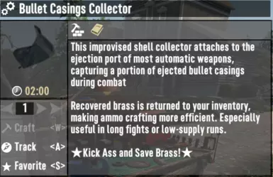 1、厌倦了看着所有珍贵的黄铜砸在地上然后消失?这个武器修改器连接到您的枪支上,让您有机会恢复用过的子弹壳。它是弹药制作者和生存主义者的必备品。