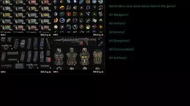 《潜行者2:切尔诺贝利之心》调酒师全部出售MOD。这个 Mod 更改了游戏中每个调酒师的库存,以包含游戏中的所有物品!(尽管我可能遗漏了一些,或者可能需要删除的内容)。
