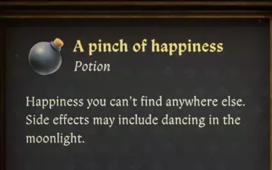 《天国:拯救2》一小撮快乐重做MOD,在最初的游戏中,它是弱 Quickfinger 药水的皮肤,我做了其他几个选择。它们中的大多数都制作成其他药水的变体,但我也制作了一个具有自定义效果的新药水。它将恢复疲惫,恢复健康,增加 5 敏捷,减少噪音,减少显眼度和能见度,增加最大耐力并提高耐力恢复。感兴趣的小伙伴快来3DM下载吧!