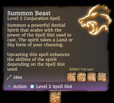 1、添加新法术:召唤野兽(法术等级 2)和召唤动物(法术等级 3),总共召唤 16 种新动物。基于 DnD 等效物,针对 BG3 进行了调整,因此它们感觉公平和平衡。对于德鲁伊、游骑兵和吟游诗人的魔法秘密。