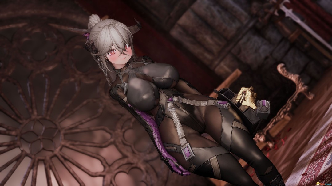 1、让你的女随从穿上少女前线2纳美西丝套装,适应 CBBE 3BA 身形,衣服附带物理特性。