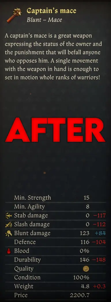 《天国:拯救2》更好的狼牙棒MOD,狼牙棒和战锤是 KCD2 中最弱的武器类别之一。除了斧头之外,它们的动画速度是游戏中最慢的,无法以 4 级质量(亨利品质)锻造,只有两个增加钝器伤害的特权,并且无法执行大师打击。该模组旨在通过对这些武器施加 10% 的整体伤害增加来解决这个问题,其中一些造成的伤害略低于 10%,而另一些则略高(如船长的狼牙棒)以获得更好的平衡。还有一个不平衡的选项,可以增加 20% 的伤害(不推荐)。感兴趣的小伙伴快来3DM下载吧!