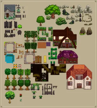 1、一个图块模组,具有额外的地形特征、建筑物、树木等,供地图制作者使用。