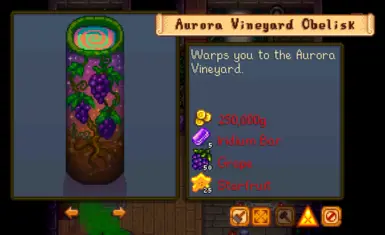 《星露谷物语》极光葡萄园旅行包MOD,前往星露谷物语扩展版的极光葡萄园的旅行解决方案,其中包括扭曲图腾、方尖碑和季节性色调的熊雕像。感兴趣的小伙伴快来3DM下载吧!