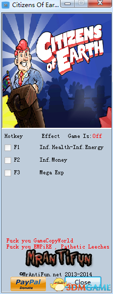 地球公民中玩家将扮演地球帝国副总统运用手中的力量团结市民打败怪物拯救世界。为了大家有一个更好的游戏体验,现在给大家一个修改器——MrAntiFun版四项修改器1.0,本修改器专为游戏1.0版本制作,有无限生命、无限能源、无限金钱和海量经验四项功能。