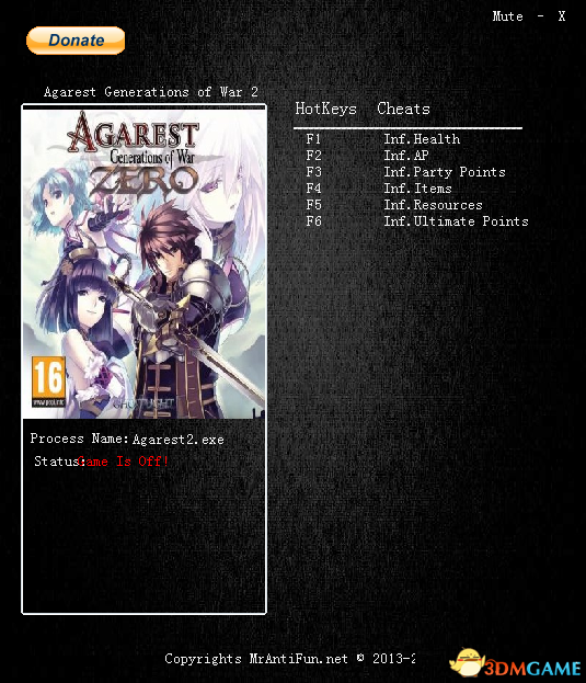阿加雷斯特战记2六项修改器1.0是MrAntiFun基于游戏1.0版本制作,有无限生命、无限政党点数、无限资源和无限终极点数等六项功能,使用时先运行游戏,再启动修改器,然后直接按功能所对应快捷键即可,不一样的游戏玩法从修改器开始。