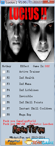 卢修斯2:预言七项修改器1.0,MrAntiFun为游戏1.0版本制作,有无限生命、无限魔力、无限生命线、无限技能点等八项功能,使用时先运行游戏,再激活修改器,需要先使用一次技能,然后才可以激活技能无CD作弊,需要的下载。