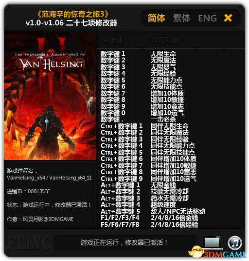 基于64位游戏进程制作,对应游戏程序:VanHelsing_x64.exe / VanHelsing_x64_11.exe