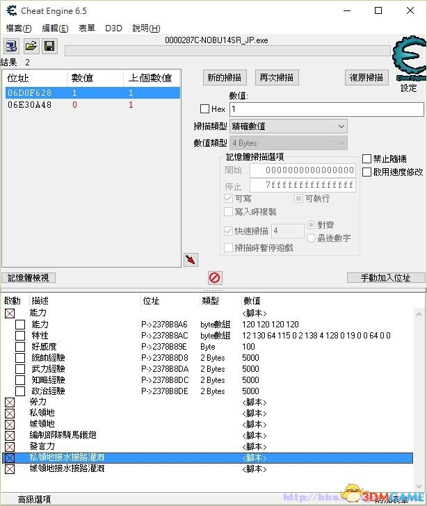 2.使用Cheat Engine 6.4导入脚本(下载:https://dl.blacksheepgame.com/201407/48102.html)