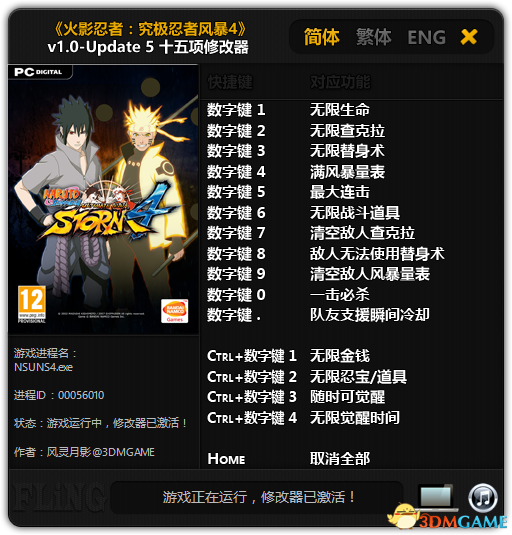 6. “随时可觉醒”激活时,不需要残血也可以觉醒,但觉醒结束后需要隔一段时间才能再次觉醒,如果需要一直处于觉醒状态,请同时使用“无限觉醒时间”。另外这两个功能对敌人也有效果,如果不想敌人也觉醒,只需清空他的查克拉即可。