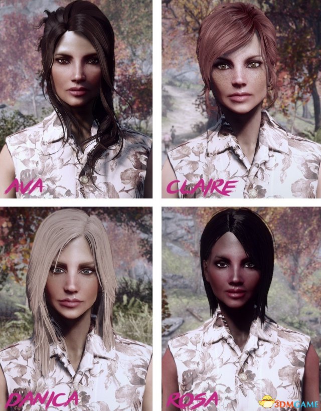 辐射4 8位独特女性角色存档;由N网玩家自制的一款女性角色MOD,其中共包含8位女性角色,当然每位角色的外观,比如发色、肤色、脸型都各有不同,有需要的玩家可以下载试试。