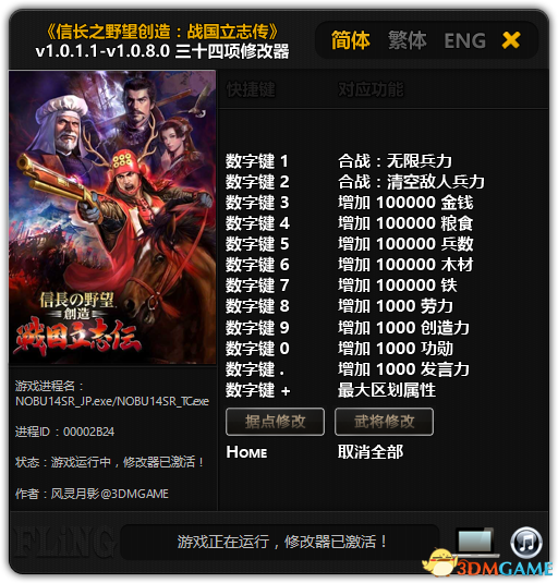 1. “据点修改”和“武将修改”里的各种功能,当数值增加到最大值时下次再增加就会重置为1或0(“降低必要忠诚度”则是重置为最大值),如果觉得某些属性加得太多想重置,或者想减少某些据点或武将的属性可以用这种方法实现。