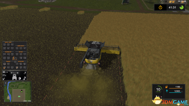 7.按3启动定速巡航 人不能下车 接下来看着就好了 当然你可以选择挂机 但是在不规则的田地和工作宽度很小的机器中会出现一些问题需要手动调整。手动调整过蚂蚁线可能没对准 按一下左ctrl+小键盘Enter 可以调整