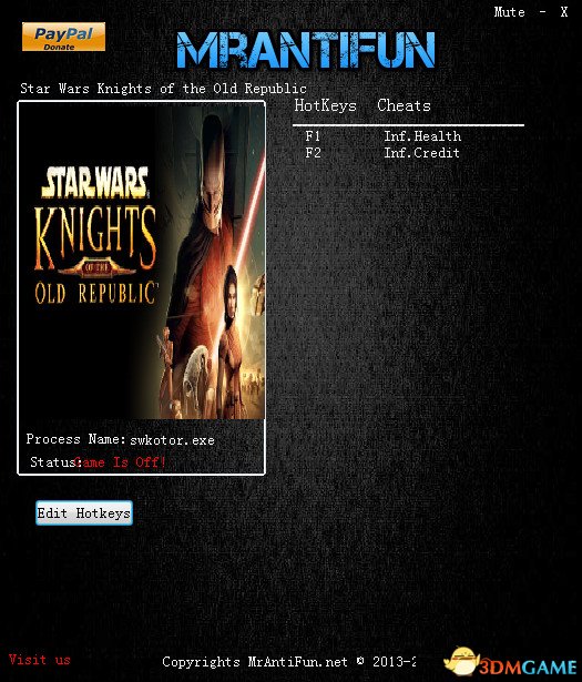 星球大战旧共和国武士2两项修改器由MrAntiFun制作分享,适用于1.0.3.0版本,修改两项属性,喜欢的朋友不要错过。