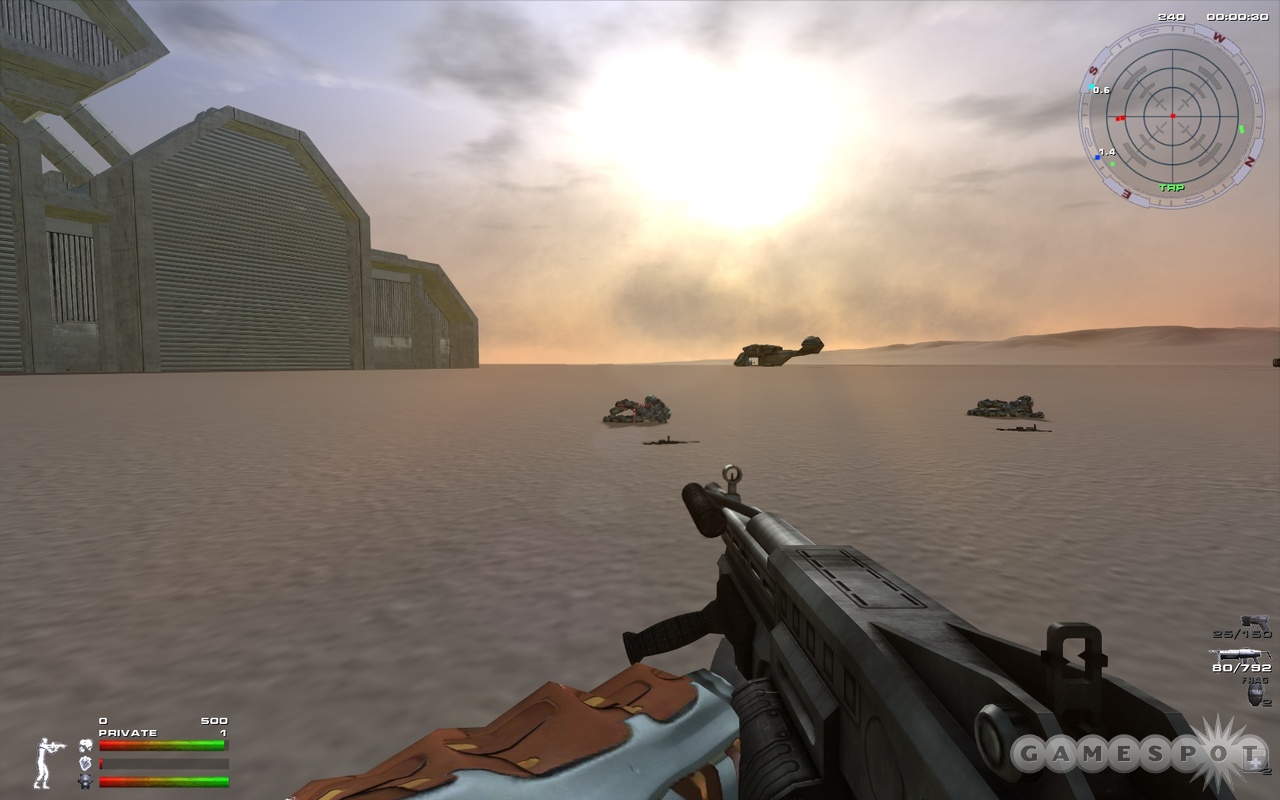 游戏的场景就是剧情中提到的敌对星球,整个游戏区域有400平方英里大小,而且十分荒凉。游戏中会有陆地、空中和海上战斗,有20多种第一人称的大规模杀伤性武器,还有一些第三人称控制的装备。