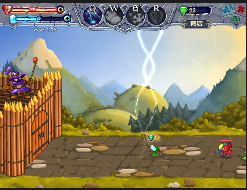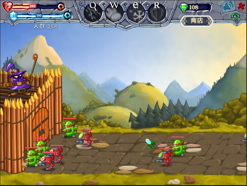 《科技与魔法之战(Tech and Magic)》是一款节奏明快紧张的守城游戏,流程并不长、算是快餐。科技与魔法之战是一款超有趣的塔防小游戏,游戏中你操作一个法师站在城楼上,面对敌方小兵来袭,你可以用普通攻击和技能消灭他们,游戏经典之处在于操作简单,画面简洁,那么还等什么呢在工作生活之余一起来玩玩看吧!