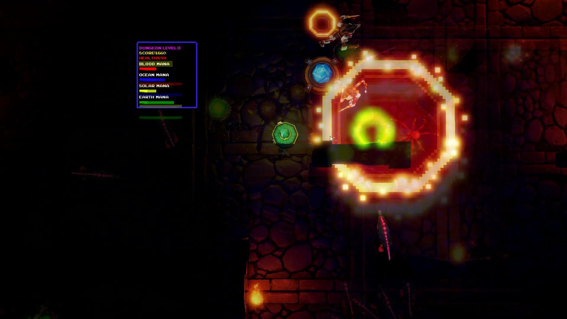 这是一个典型的风格自上而下的动作游戏,深入到一个邪恶的地牢深处,考验你对无数敌人的威力。收集多种类型的法力水晶以释放特殊的魔法能力。放置陷阱,扔火球,释放太阳的力量,用海洋的力量淹死你的受害者。