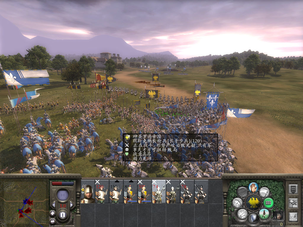 大规模的即时战斗:史诗战斗配以细节刻画精美的部队,战斗中可以同屏显示数千个作战单位。军队现在由精雕细琢的作战单位组成,他们有独一无二的头部、身体、武器和盔甲,并有各自的动画和姿态,这样每个独立的部队单位都有自己的特征和细节。步兵和骑兵身上装饰着各式各样的纹章,这些战争机器的外观会随着战役的发展而逐渐沾上泥土和血污。