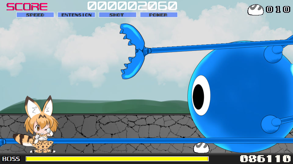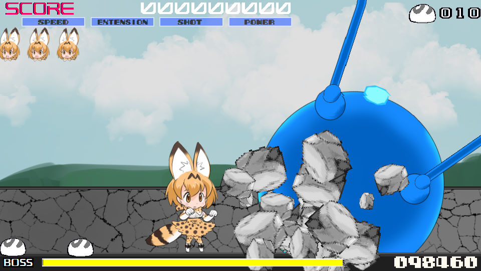 0人《兽娘动物园同人(kemonodius)》是一款动作小游戏。玩家需要操作萌化的兽娘来击败强大的BOSS,BOSS的招式繁多。玩家需要再躲避BOSS发出的招数时攻击BOSS唯一的伤害判定点——眼睛,才能对BOSS造成伤害。