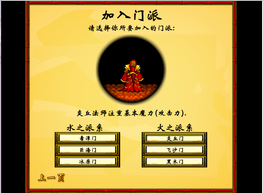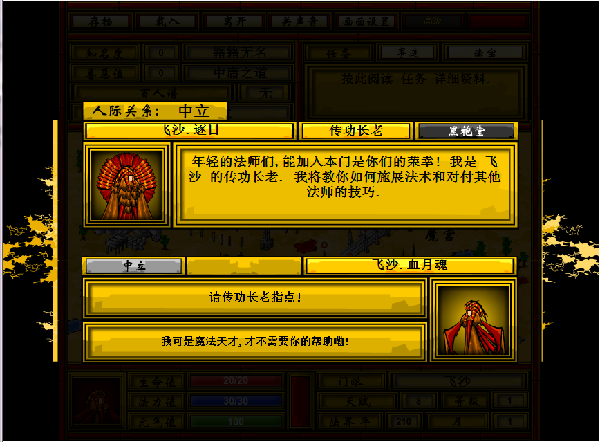 1、游戏中门派的选择非常重要,不同的门派到了后期差距非常大,玩家最后的目的是不断的强大自己,成为江湖中的武林盟主。