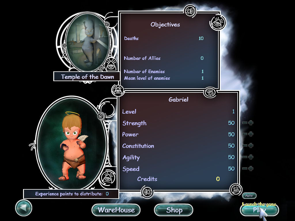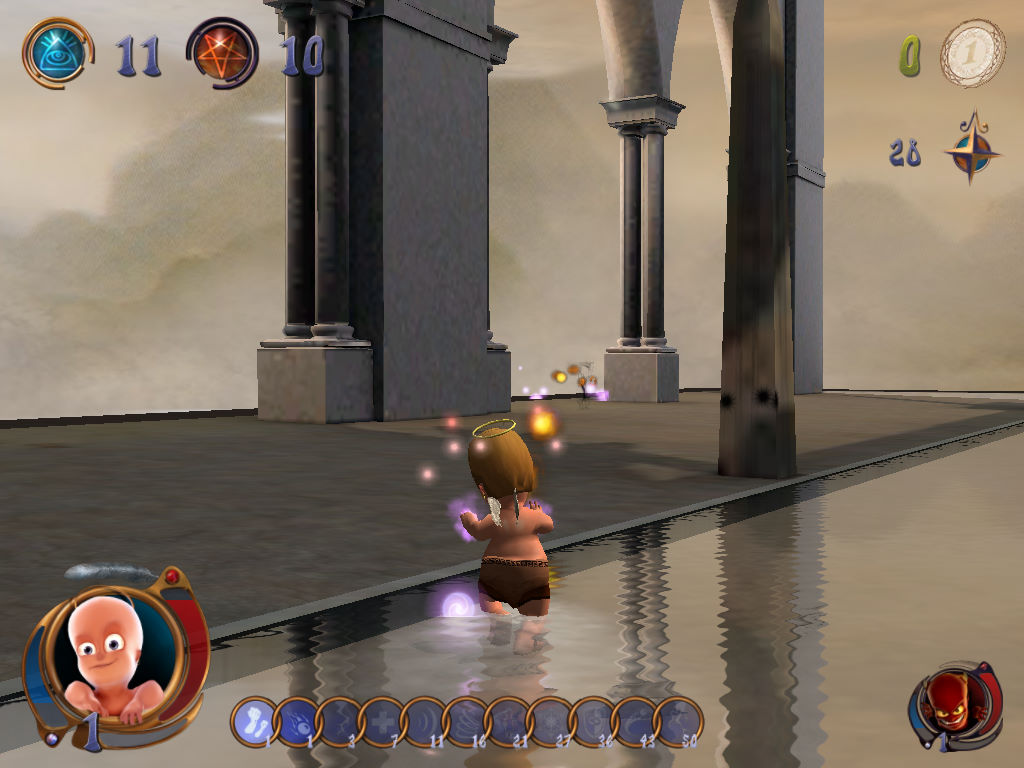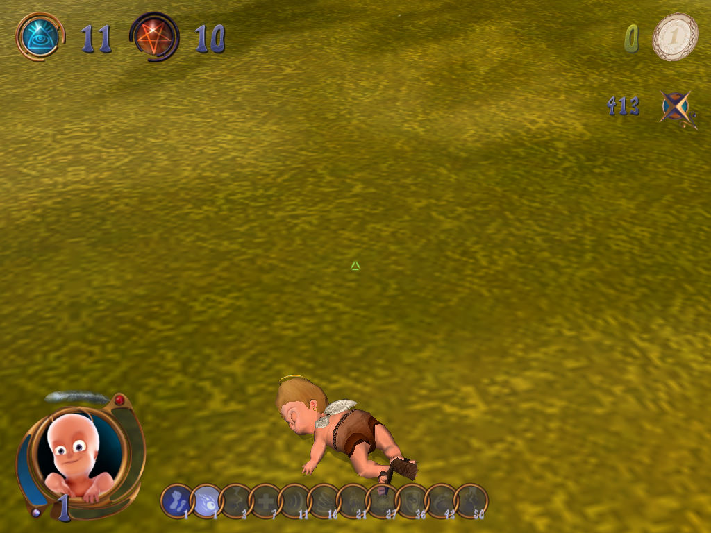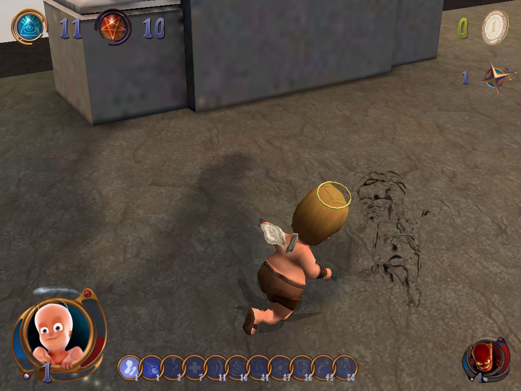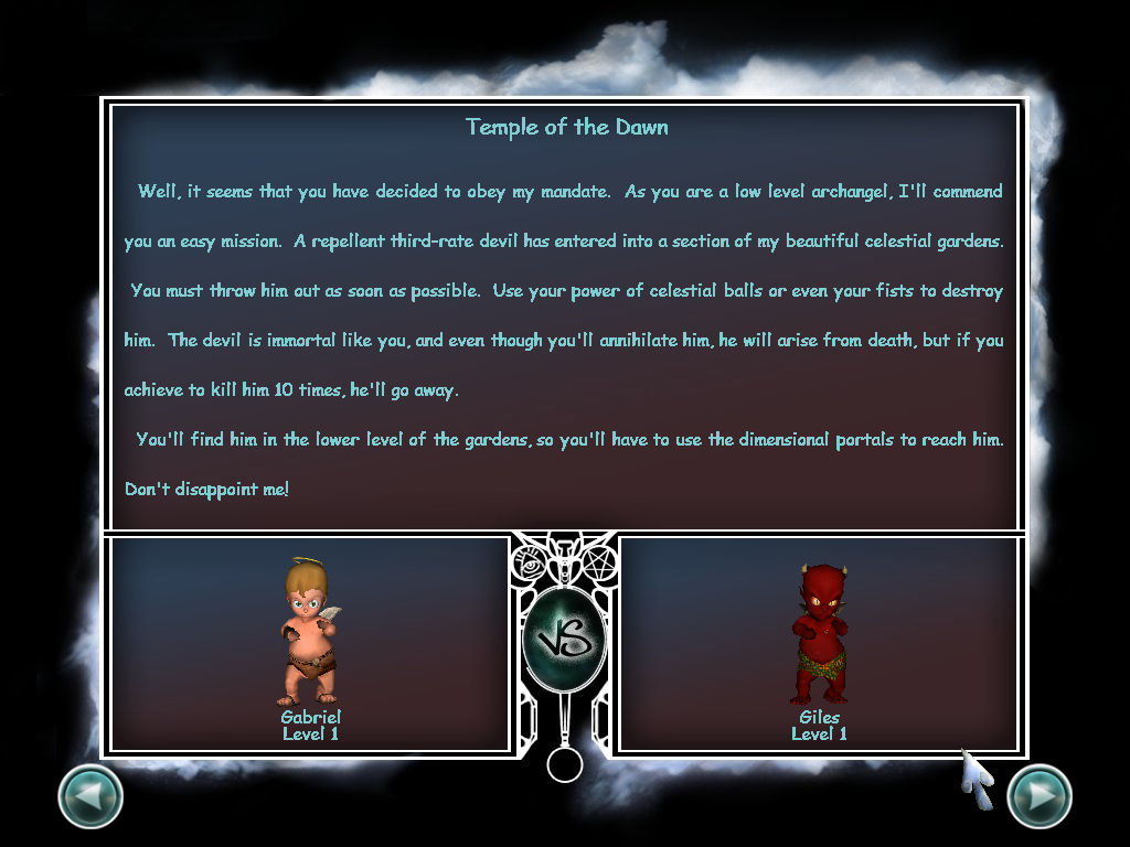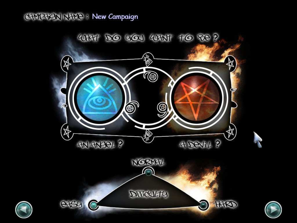 这款游戏内容跟计算机上知名经典《黑与白》颇为类似,就是让玩家能自由选择要成为善良的天使还是邪恶的恶魔,为了取得更多人类的信仰而彼此争战不休。只不过再正义与邪恶战争的背后,竟然是透过穿著尿布的小天使或是小魔鬼径行正邪之战。