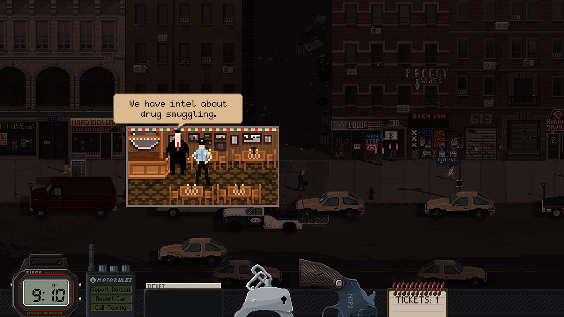 《巡警(Beat Cop)》是Pixel Crow制作的一款动作冒险游戏。警匪题材一直受玩家的青睐,有的玩家喜欢成为一名匪徒,在游戏当中无所顾忌的做一些事情;有的玩家喜欢成为一名警察,惩恶扬善,实现自己儿时的一个小小的梦想。在这款像素风格的警匪游戏中,玩家扮演一名被嫁祸的侦探,踏上为自己洗冤的道路,一路的坎坷不言而喻,快来通过蛛丝马迹来解开游戏的谜团吧。