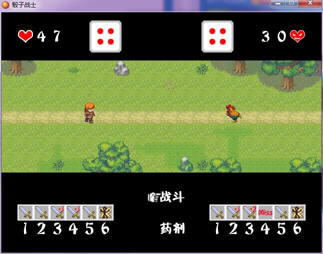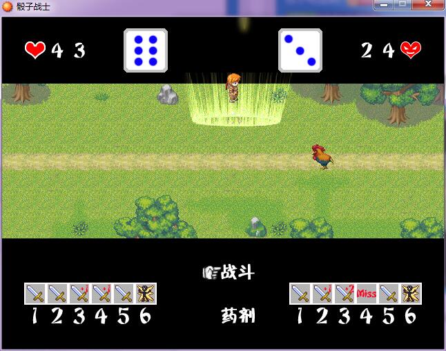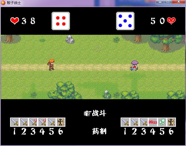 《骰子战士》是一款由“W.Q.C.”原创制作的RPG小游戏,游戏大小10M左右,游戏时长为5分钟到10分钟之间,单线,主打玩法。每个骰子的面代表一个指令,战斗中人物的行动指令只能靠投出的骰子面来决定。