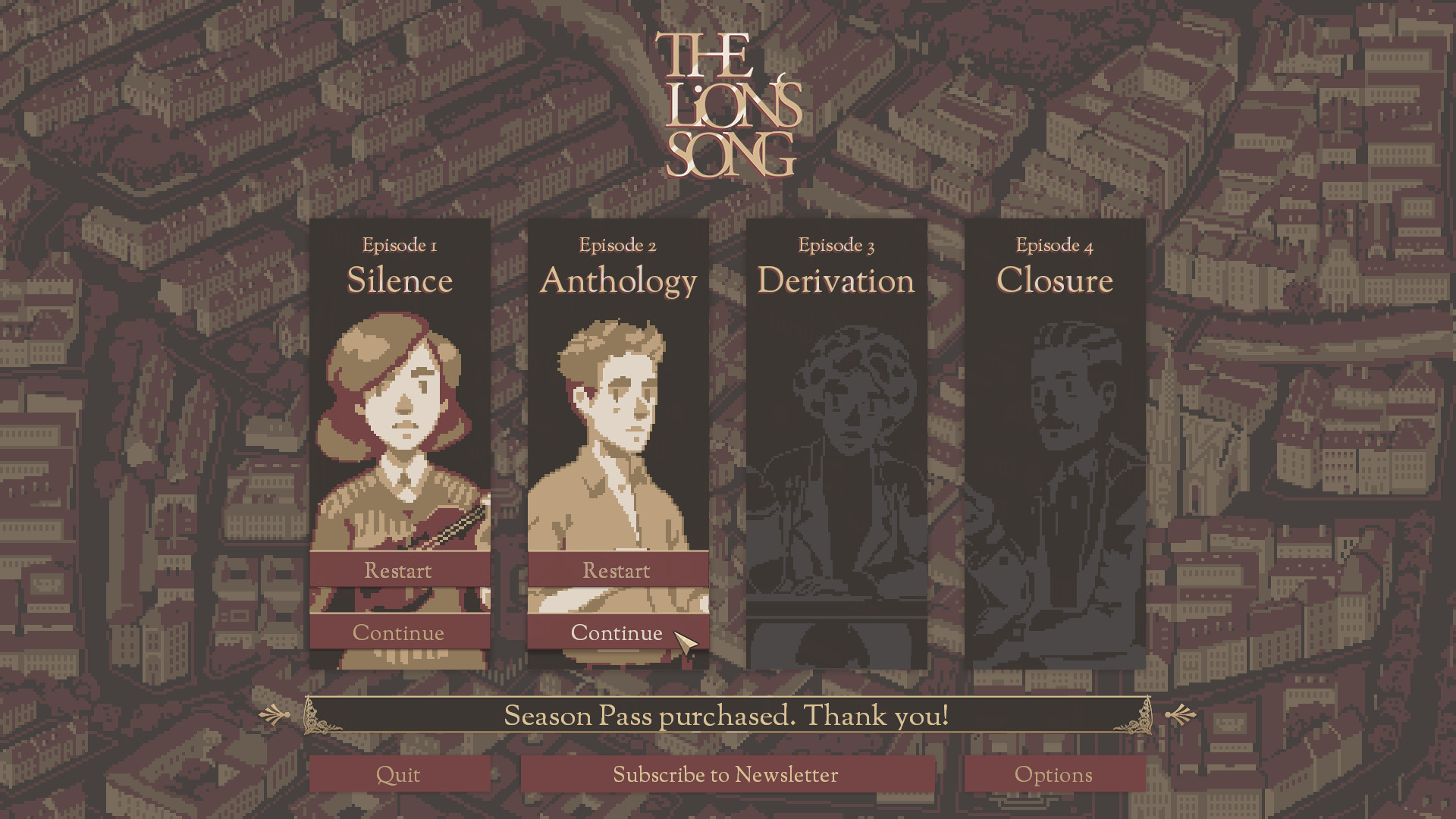 《狮子之歌(The Lion's Song)》是由Mi'pu'mi Games制作发行的一款冒险解谜游戏,游戏背景设定在20世纪初的澳大利亚,属于那种以剧情引人入胜的作品,因此像素风的画面反而不是最重要的,复古的色调、悉心打造的建筑以及颇有时代感的角色设计都是恰如其分的。