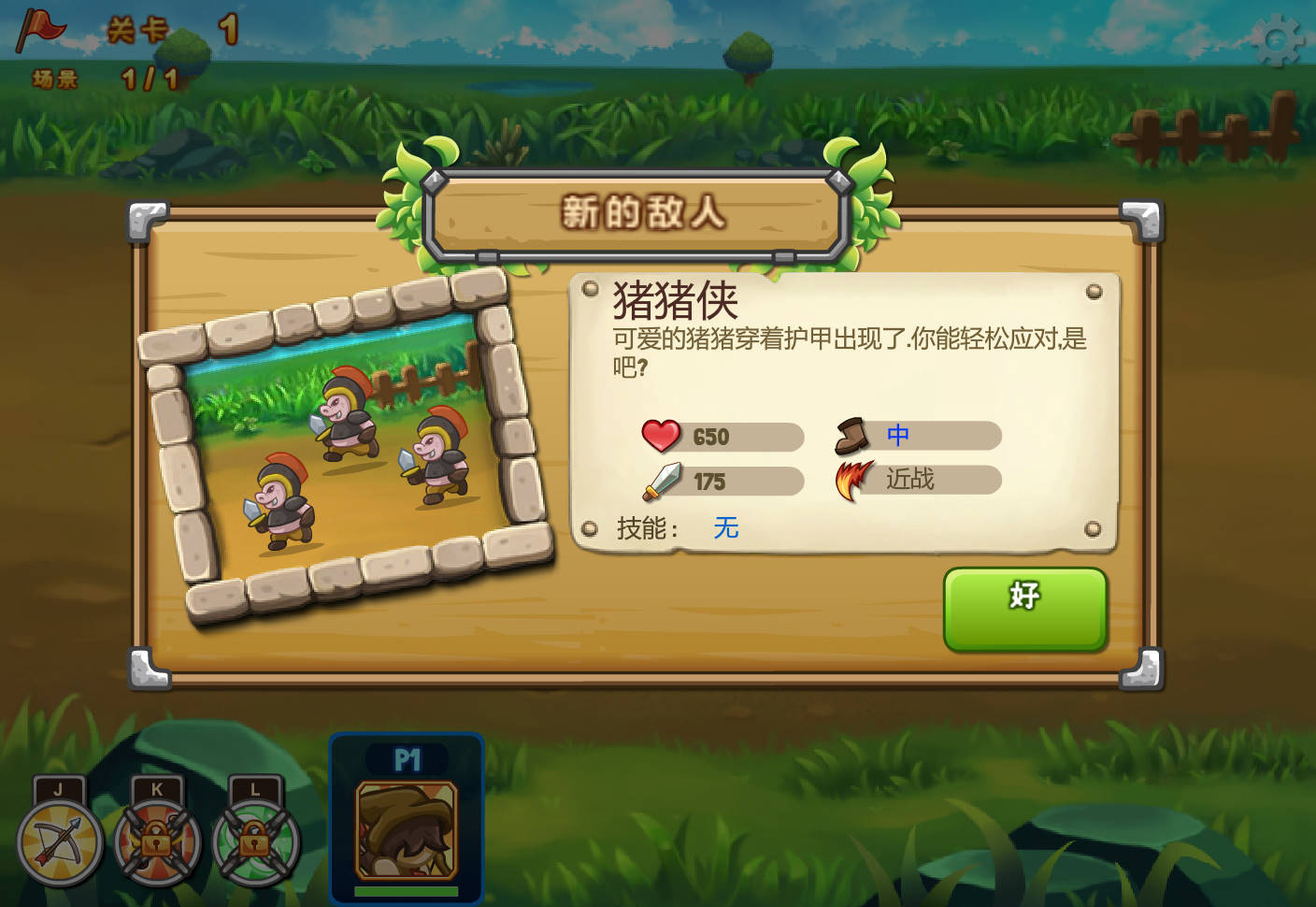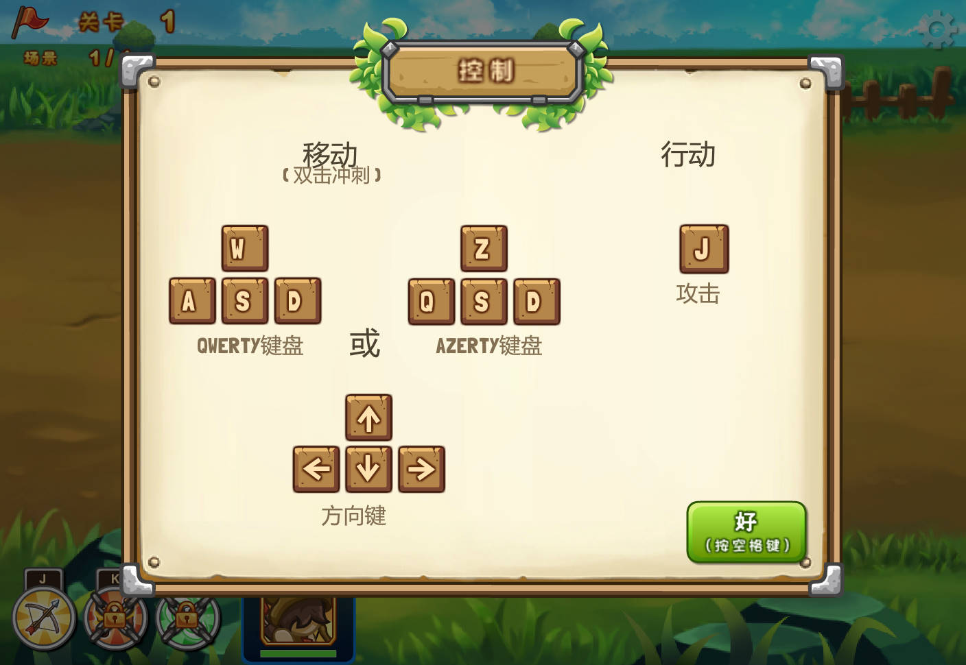 WASD控制人物移动J普通攻击K L使用技能 P暂停
