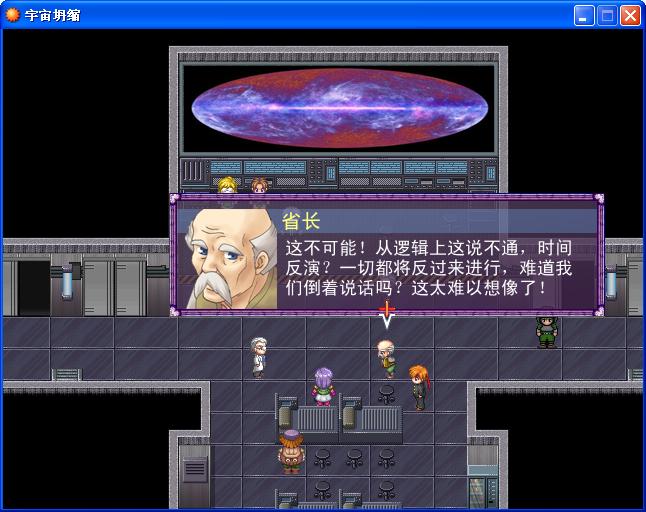 改编自刘慈欣小说【宇宙塌缩】,时间反转那段很容易出现BUG,说起来,因为时间反转后,恐怕大多数玩家都没有耐心看下去了,所以我就加了个一键返回标题界面的按钮。