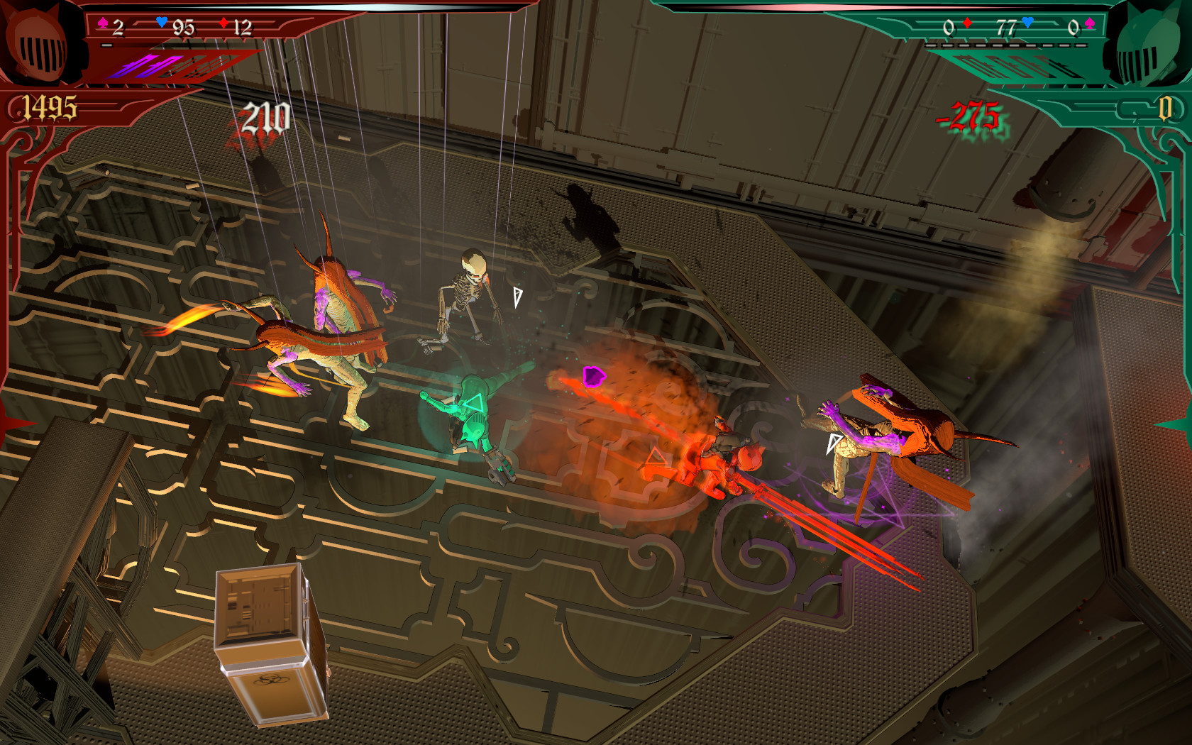 在游戏中一共有6个不同世界共27个关卡,并且拥有18中不同的怪物以及3个BOSS。游戏还支持多人,可以两个玩家一同游玩,还有众多成就等你解锁。游戏的节奏非常快,而且设定非常有意思。每个角色身上都是木偶的线,这就让玩家仿佛身临一个木偶剧场,而自己就是一个木偶操控师。