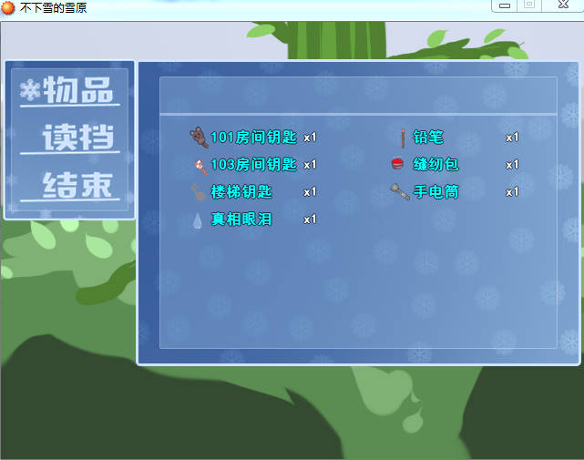 《不下雪的雪原》是一款由“青舞”原创制作的冒险解谜游戏。游戏围绕少年林夕的冒险之路展开,陌生的环境,白茫茫的雪地,诡异的少女,前方等待他的还有什么?游戏中可以搜集多种道具,钥匙、铅笔、手电筒、缝纫包等,合理使用道具才可以顺利过关。