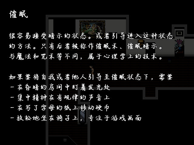 游戏中玩家需要扮演被催眠的少女,找出脱离催眠状态的方法。