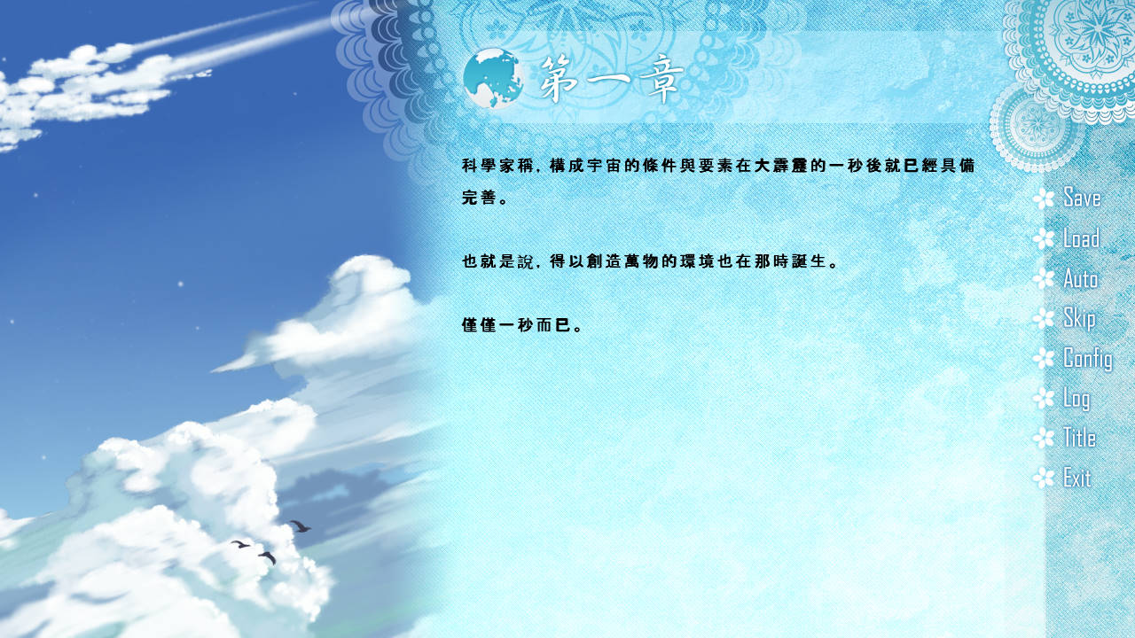 故事讲述一个很久以前在外太空建立的殖民地,不久后将坠落到地球上。这危机无可避免,而已经知晓一切的男子,与个特别的女孩子相遇后,两人的生活都有了点变化……