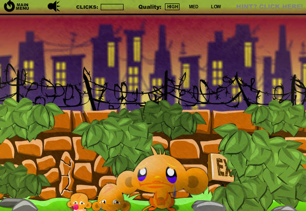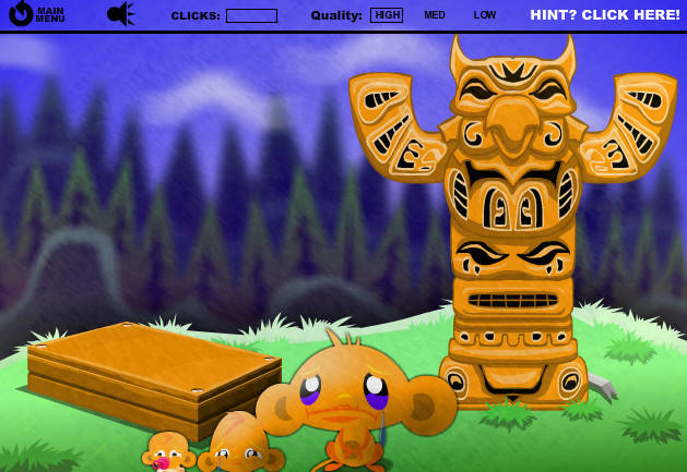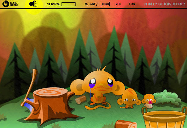 玩家需要用鼠标操作各个关卡场景里的物件来触发事件,来让奔不开心的小猴子们露出微笑,跳起舞蹈来过关。