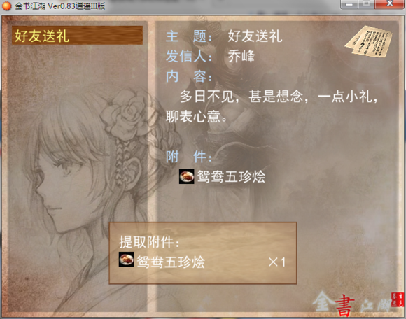 《金书江湖:逍遥叁》是一款由“醉丶逍遥”制作开发的角色扮演类游戏。是一款高自由武侠RPG,共计23个门派随意加入,29种玩法套路随意选择,数百种武功随意搭配,体验最真实的金书江湖。那么别等了,赶紧来玩吧。