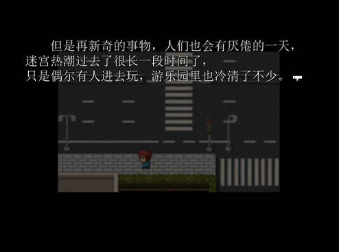 《子京》仅是一款较短的RPG游戏,游戏开始会有一段很长的剧情,玩家需要使用Enter、C键或空格键进行确定。这段剧情可以说包含了这款游戏所要表达的主题。那么,主题到底是啥呢?怀念?记忆?还是仅仅只是为了引出迷宫?作者说,这款游戏并没有什么特别明确的主题,只是把突然想到的一些事情表达出来了罢了。但是,作为玩游戏的我们,会从中中间体会到的什么呢?会不会勾起我们心中那渐渐遗忘的某个人儿呢?