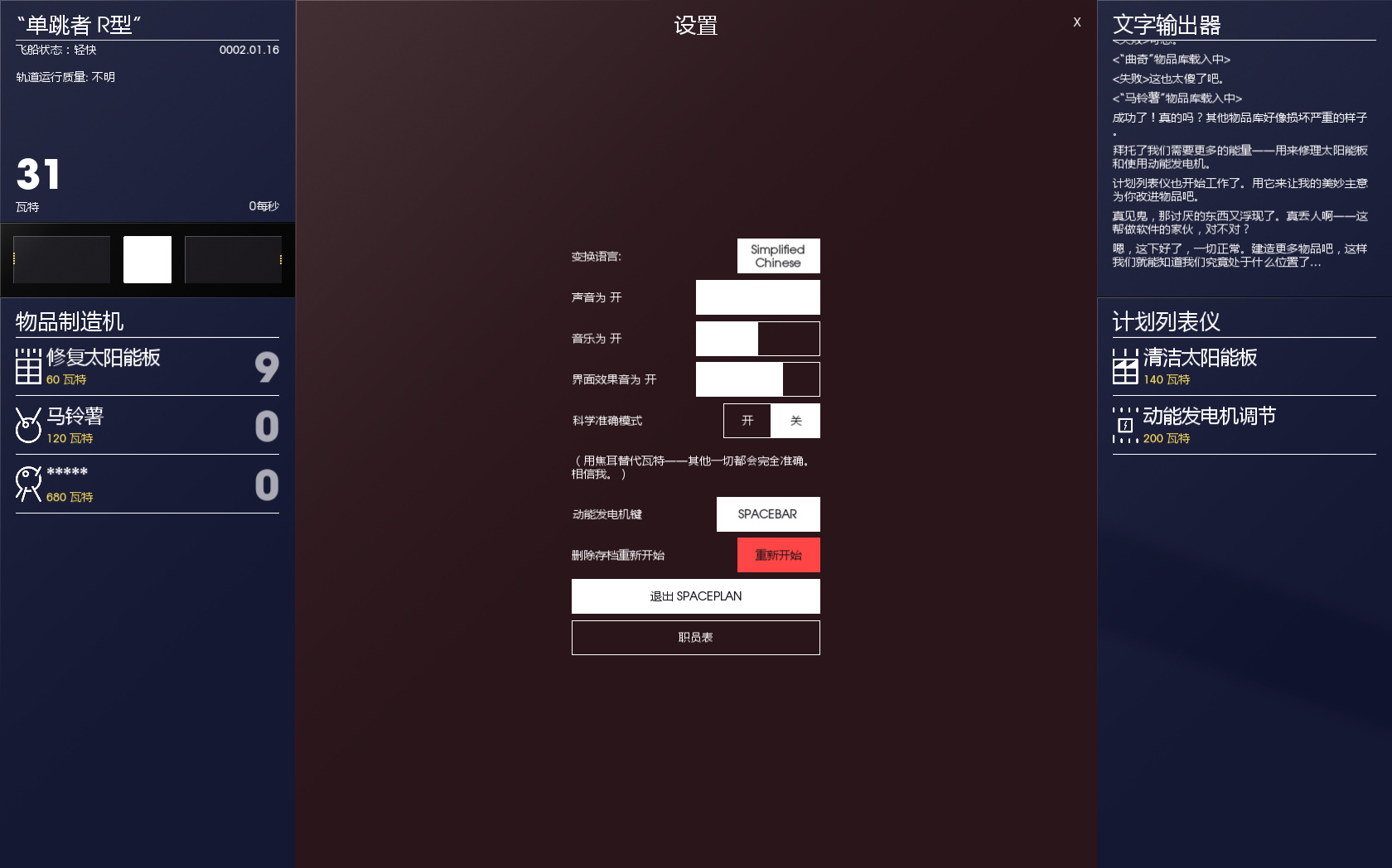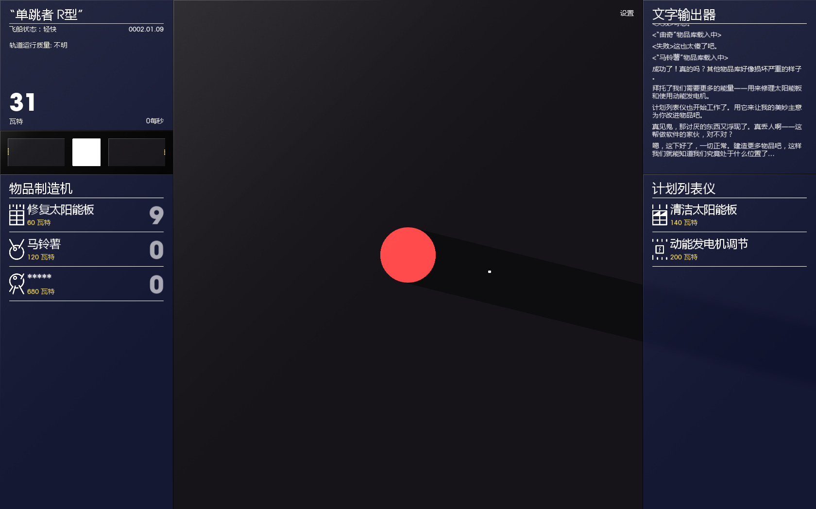在环绕着神秘行星的奇妙卫星上,随着时间推移,利用手动点击来制造和发射马铃薯制作的设备与探针。