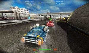 在游戏里,各种装备着军火的战车替代了豪车,在这里,速度并不意味着一切。玩家将可以使用赛车上的机枪对前方车辆进行射击。玩家如果射爆前方车辆,则可以轻松超过获得第一。游戏画面给人的第一感觉就是一股沉重的金属感,车辆被厚厚的装甲包裹着,上面架上各种机枪,火箭炮,在金属栏杆的保护下,车手们在进行殊死的搏斗。